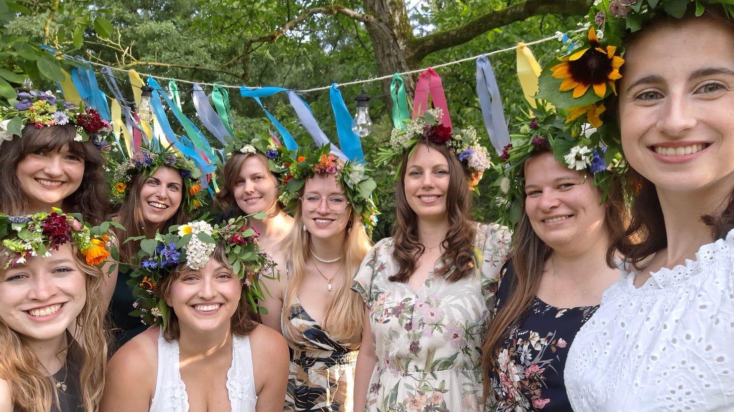 Meeting all these amazing women (for all of them are in fact amazing) was like a warm hug. In some cases a real, sweaty hug. I immediately felt at home with them and knew I was in a good place, which really helps when you’re nervous to meet new people. The next 4 days were filled with fun activities & connecting with each other. From long evening talks to challenging but good yoga, an excursion through the city center of Antwerp, a picnic & visiting a flower field to get the flowers for our flower crowns for the Midsummer celebration. It was refilling the well & being creatively motivated in one.